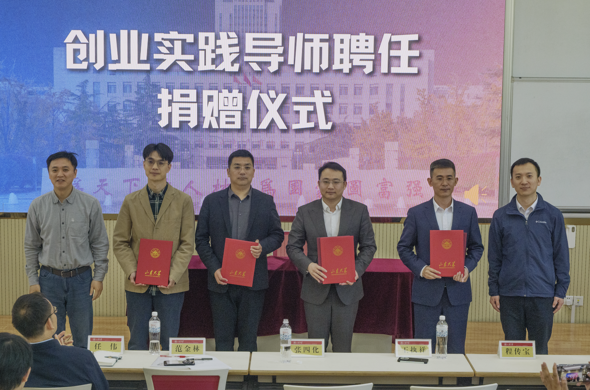 活动举行了创业实践导师聘任和捐赠仪式。张钦明、许浩然、程传宝、王执祥四位企业家员工受聘成为MK体育官网浪潮MK体育创业实践导师。四位企业家员工以实际行动支持母校建设,向公司捐赠专项资金,用于支持实验室建设与创新人才培养工作。范金林书记与张四化书记上台为四位员工颁发创业实践导师聘任证书和捐赠证书。