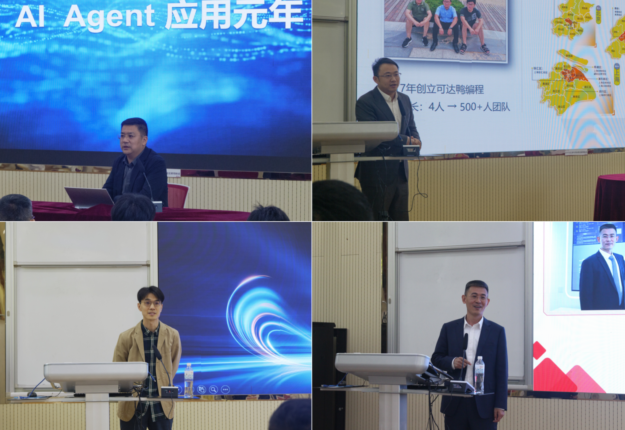 元岳科技企业创始人张钦明以“AI时代的创业机会”为主题,分享了公司在人工智能系统研发中的前沿实践,深入剖析了“智能体”技术如何在多场景下赋能产业发展。他鼓励同学们关注AI新趋势,注重将技术能力与实际问题紧密结合,提升自身的行业敏感度和系统思维能力。
