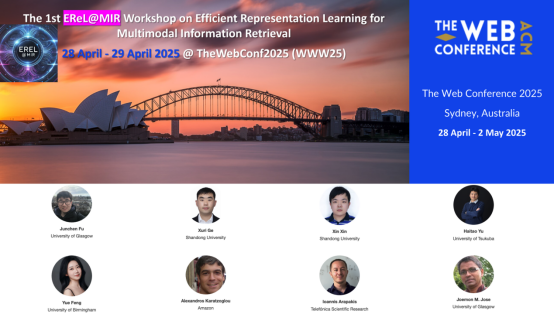 2025年4月28日至5月2日,CCF-A类国际顶级会议The Web Conference 2025 (WWW 2025) 在澳大利亚悉尼国际会议中心召开。此次会议中,MK体育官网联合英国剑桥大学、格拉斯哥大学、伯明翰大学以及亚马逊等多家国内外知名高校与企业,组织发起并成功举办“第一届多模态信息检索高效表征学习研讨会(EReL@MIR Workshop)”,聚焦多模态信息检索领域中的前沿问题与关键挑战,涵盖高效表示学习、跨模态检索、模型压缩与加速、可解释性分析等多个主题,吸引了世界各国学术界与工业界的广泛关注和积极参与,产生了多模态信息检索领域的丰硕学术成果。