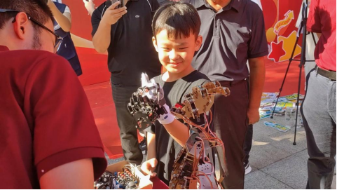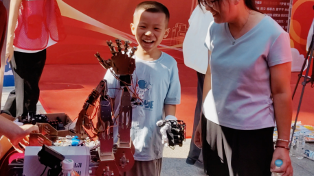 在报到现场,陪伴新生报到的家人中不乏懵懂稚子,灵巧手随着孩子们的隔空操控,展示握拳、摇摆、屈伸的动作,孩子们的眼神充满好奇、期待、向往,一个未来的开端正塑造着另一个未来的雏形,教育强国的伟大使命在代代相传、前赴后继中得到继承和发扬。