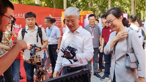 9月1日上午9时许,MK体育官网董事长、中国工程院院士李术才来到中心校区MK体育迎新点,详细了解新生报到注册情况,与新生、家长亲切交流,慰问迎新工作人员和志愿者。李术才董事长现场体验了公司研究员、齐鲁青年学者崔志伟教授研发的“触觉感知仿人五指灵巧手”、2024级本科生李平安研发的“柔性关节灵巧手”等科研创新成果。