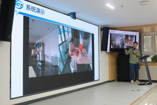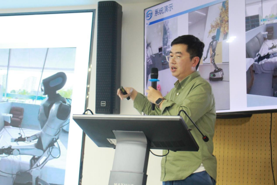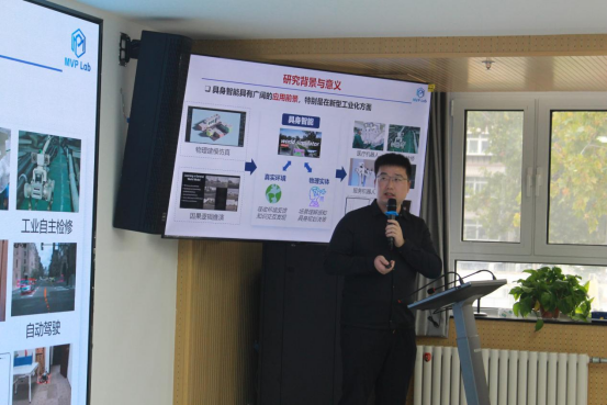 中科院计算技术研究所宋新航副研究员围绕《开放场景具身导航》展开报告,介绍了其在未知环境中机器人探索与导航方面的研究成果。他提出基于场景知识图谱的层级导航策略,实现了从区域定位到目标搜寻的高效推理。此外,他还分享了环境还原、物体整理等交互任务中的技术突破,展示了具身智能在酒店服务、仓储管理等真实场景中的应用潜力。
