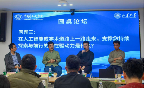 在圆桌讨论环节,三位专家围绕“具身智能与人类认知差异”“模型意识的判断标准”“学术内心驱动力”等议题展开深入交流。专家们指出,未来的智能系统需更强调整合物理交互、社会理解与伦理对齐,具身智能是实现通用人工智能的关键路径。大家一致认为,青年学者应在理论创新与工程实践结合的方向上持续探索,以开源共享、跨界合作的精神推动中国人工智能的高质量发展。